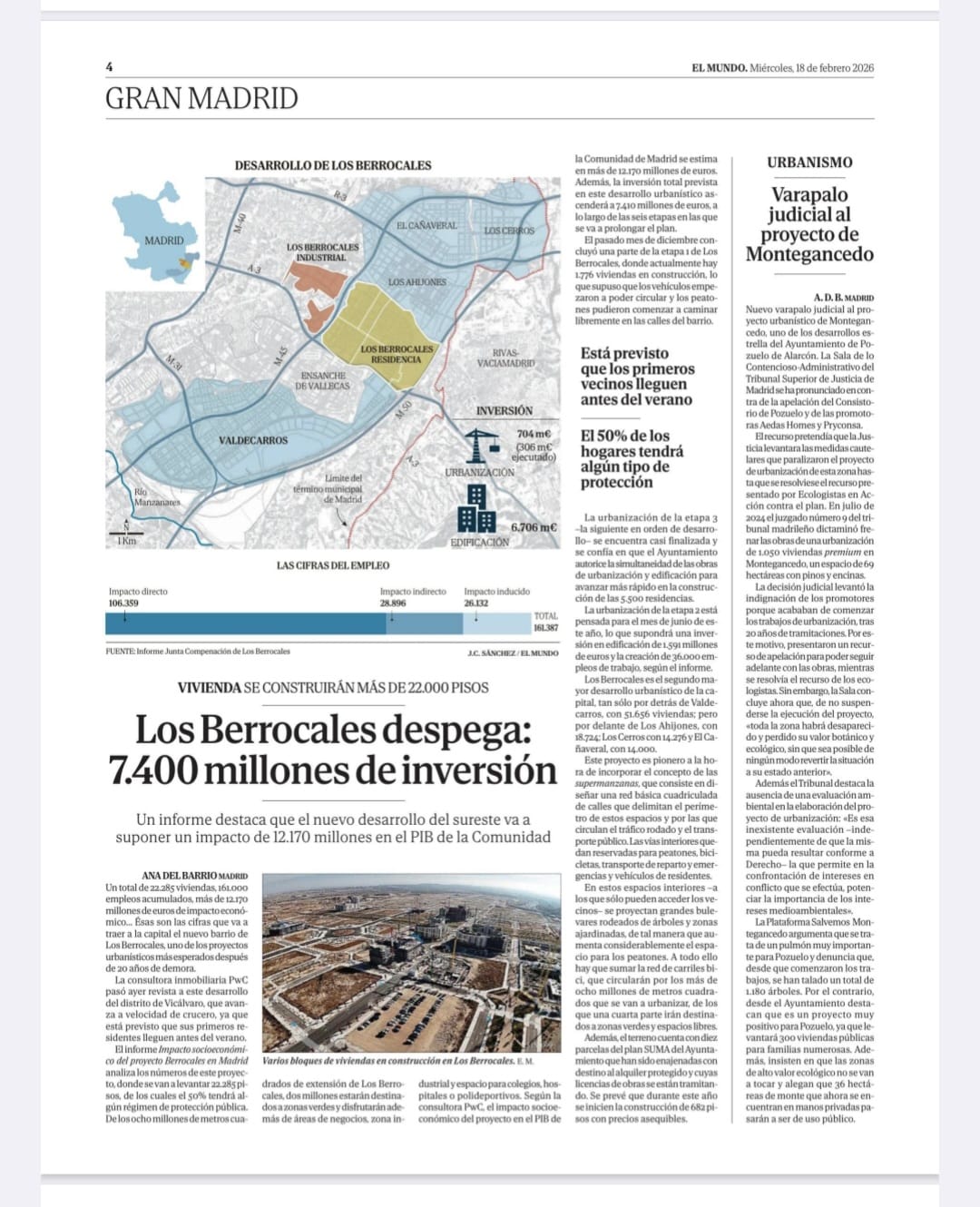 El proyecto Berrocales urbanizará 8.305.818 de metros cuadrados pertenecientes al municipio de Madrid en los que se edificarán más de 22.000 viviendas y se implantarán actividades económicas comerciales e industriales proponiendo un modelo de ciudad donde será posible vivir y trabajar al mismo tiempo.